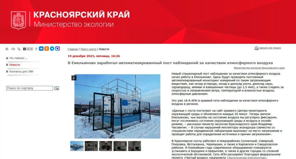 «В Емельяново заработал автоматизированный пост наблюдений за качеством атмосферного воздуха»