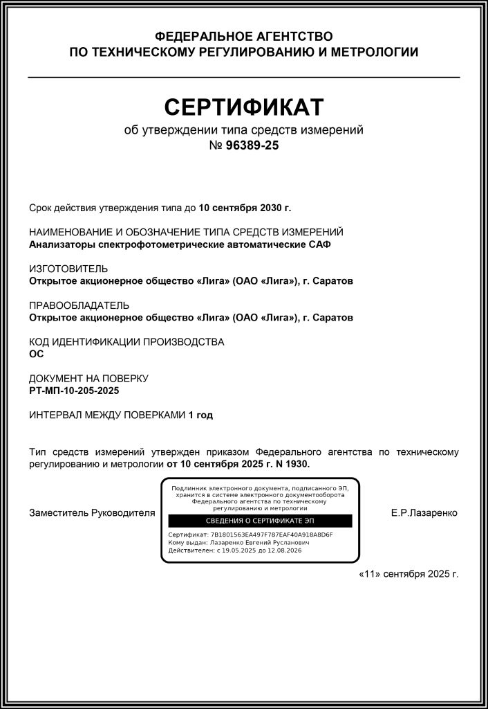 Регистрационный номер в Федеральном информационном фонде по обеспечению единства измерений - 96389-25