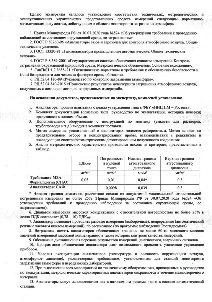 Анализаторы спектрофотометрические автоматические CAФ предназначены для измерений массовых концентраций формальдегида в атмосферном воздухе.