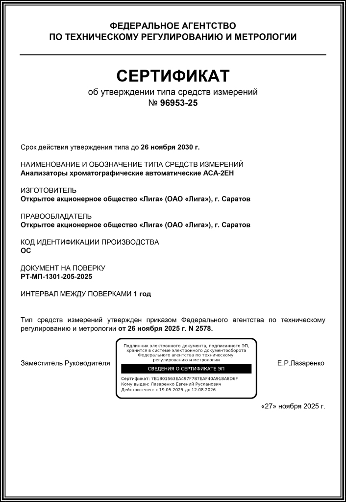 Регистрационный номер в Федеральном информационном фонде по обеспечению единства измерений - 96953-25