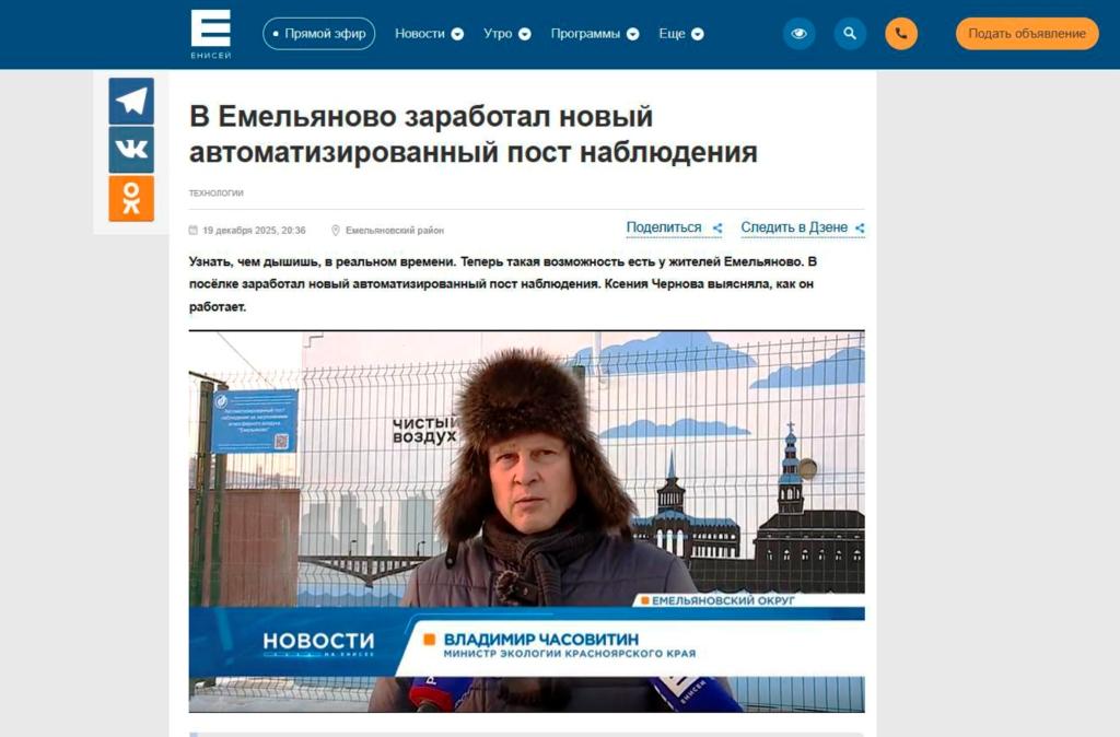 «В Емельяново заработал автоматизированный пост наблюдений за качеством атмосферного воздуха»